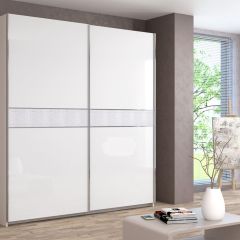 ИННЭС-5 Шкаф-купе 2-х дв. 2000 (2дв. Ф3 - белый глянец вставка экокожа белая)